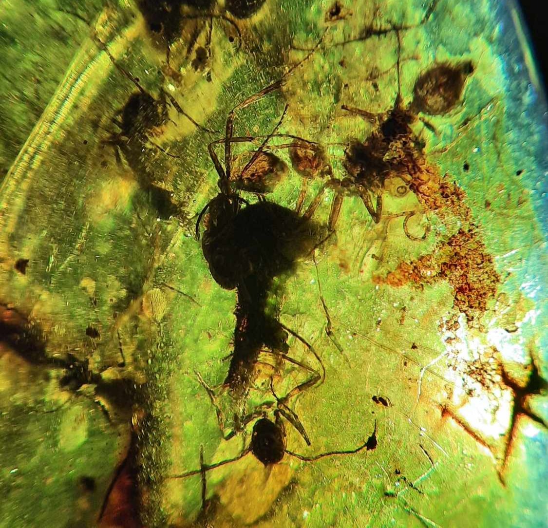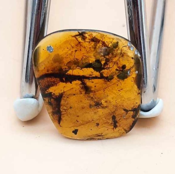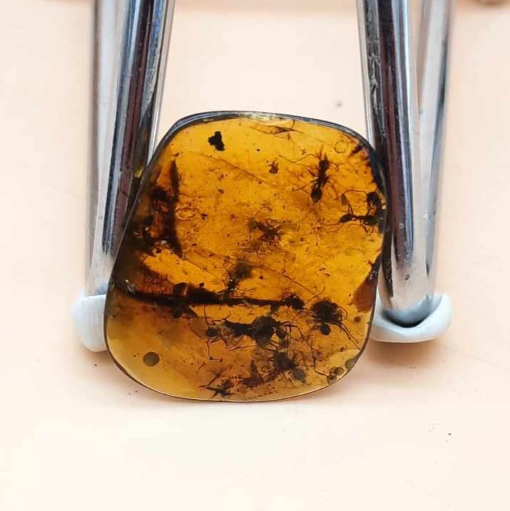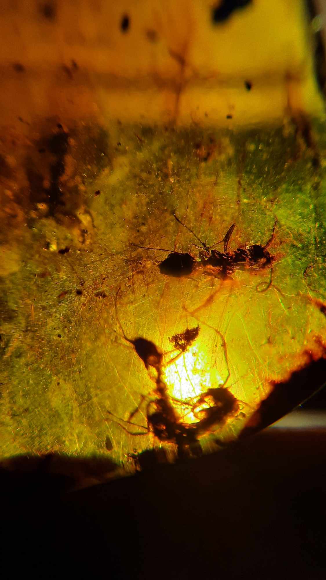 Petite ambre riche en fourmis et quelques debris de végétaux.