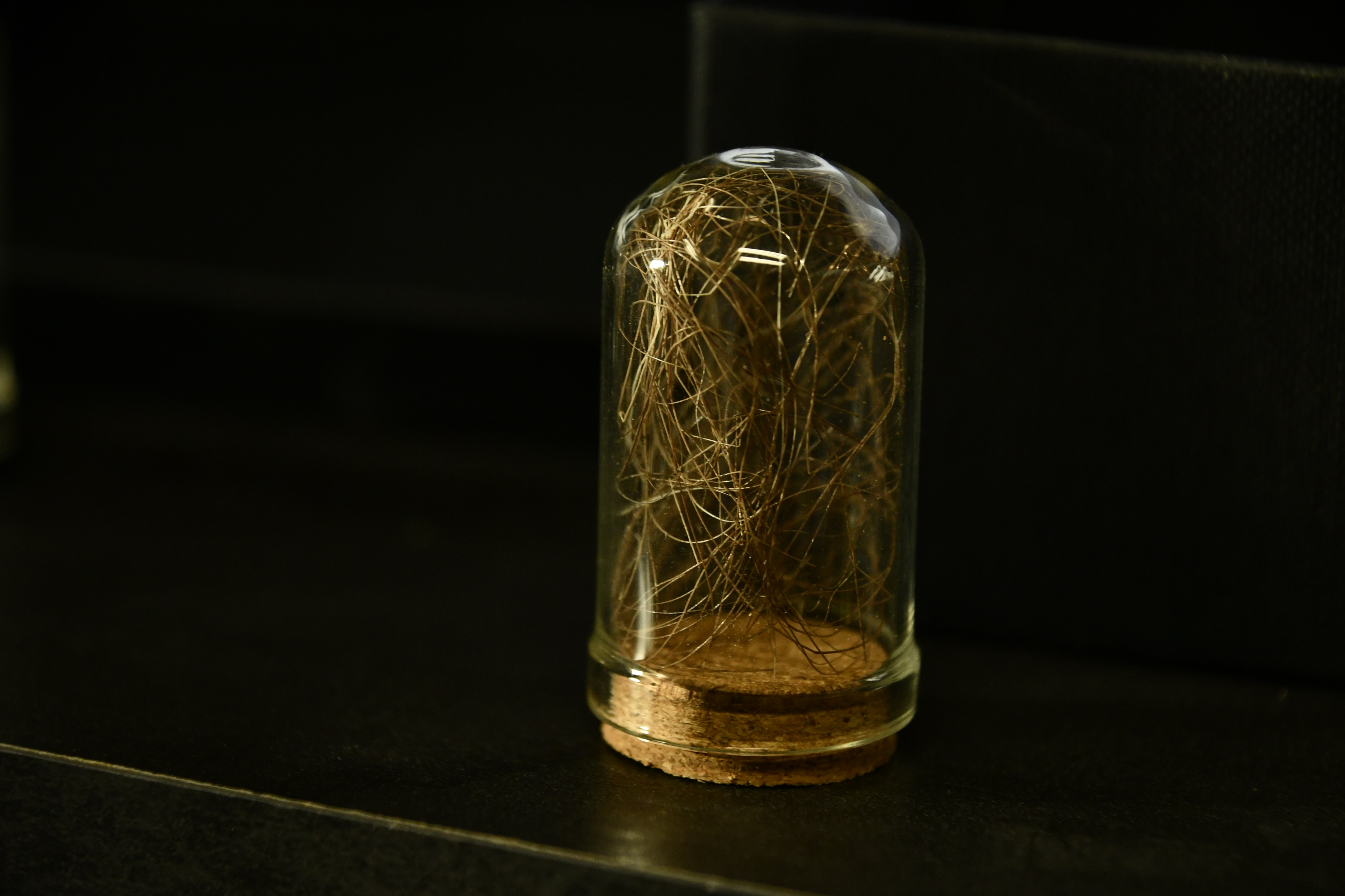 Poils de Mammuthus primigenius dans sa fiole en verre.