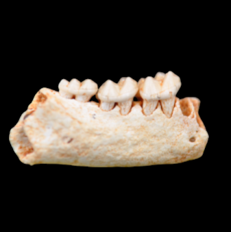 Fragment de mandibule droite avec M1, M2 et M3 d’un Necrolemur antiquus, rare petit primate.