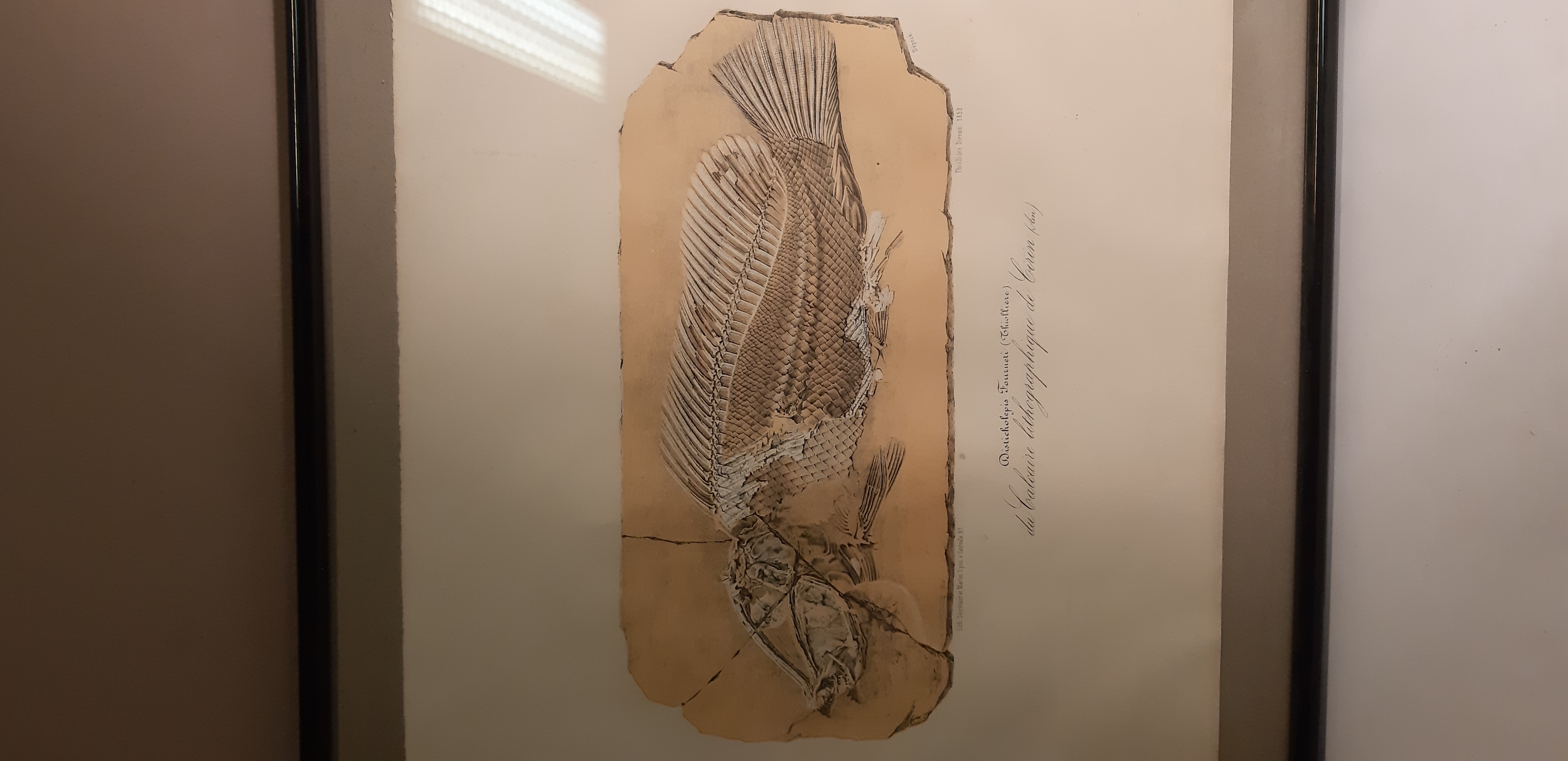 Planche lithographique d’un Disticholepis fourneti du calcaire lithographique du Cérin (Ain) du Jurassique supérieur.
