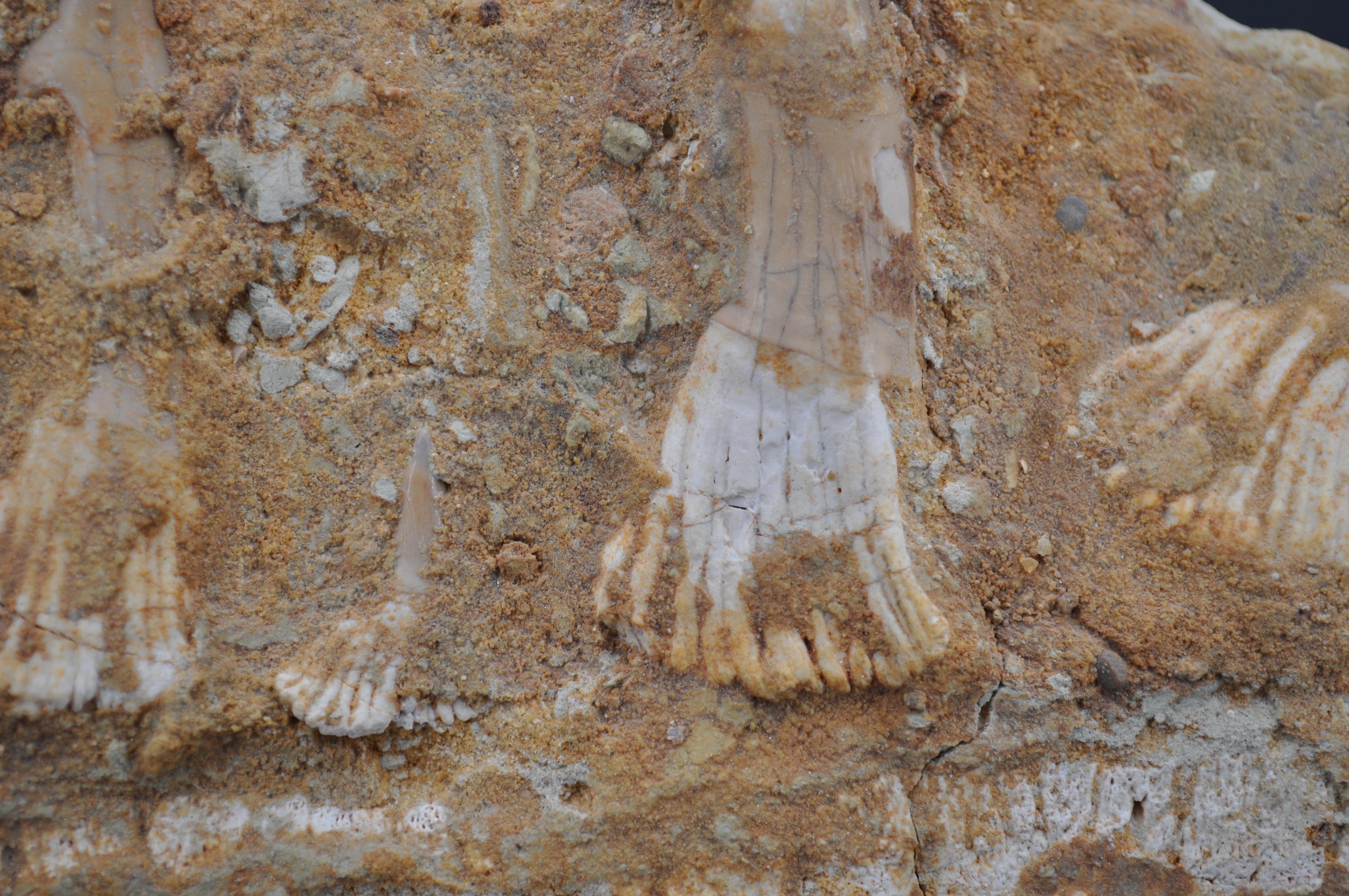 Postion du rostre du célèbre poisson scie fossile d’Onchopristis numidus. Ici on peut voir les dents en forme de harpon qui est une de ses caractéristiques.